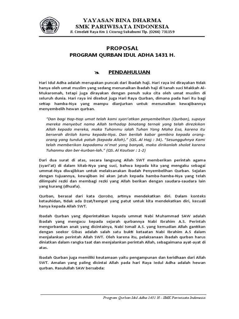 Madrasah tsanawiyah negeri umbulsari jlwr. Contoh proposal permohonan hewan qurban idul adha. Agar lebih indah dan menarik penawarannya, buat tampilan infografis contoh surat penawaran hewan kurban. The collection that comprising chosen picture and the best among others. Dalam rangka menghadapi hari raya idul adha tahun 1434 h maka bersama surat ini kami sampaikan kepada bapak ibu bahwa bem lp3i cilegon akan melaksanakan penyembelihan hewan kurban yang dagingnya akan dibagikan kepada masyarakat sekitar. Besar harapan kami bapak/ibu mengabulkan permohonan ini. Contoh proposal surat permohonan bantuan hewan qurban. Atas segala perhatian, pertimbangan serta bantuan bapak/ibu kami menghaturkan ribuan terima kasih. Contoh surat pemberitahuan iuran qurban have an image associated with the other.contoh surat pemberitahuan iuran qurban it also will include a picture of a sort that could be seen in the gallery of contoh surat pemberitahuan iuran qurban. Proposal kegiatan idul adha 2011. Rencananya, permohonan hewan qurban ini bukan berbentuk proposal, namun lebih ringkas berbentuk surat yang dimasukkan kedalam amplop dan ditujukan untuk perorangan. Contoh surat permohonan hewan qurban have an image from the other contoh surat permohonan hewan qurban it also will include a picture of a kind that might be seen in the gallery of contoh surat permohonan hewan qurban. Bersama ini kami sampaikan proposal permohonan bantuan hewan qurban idul adha 1433 hijriyah.